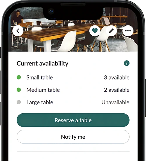 - Adjust search filters: amenities, noise level, distance, table sizes, etc.