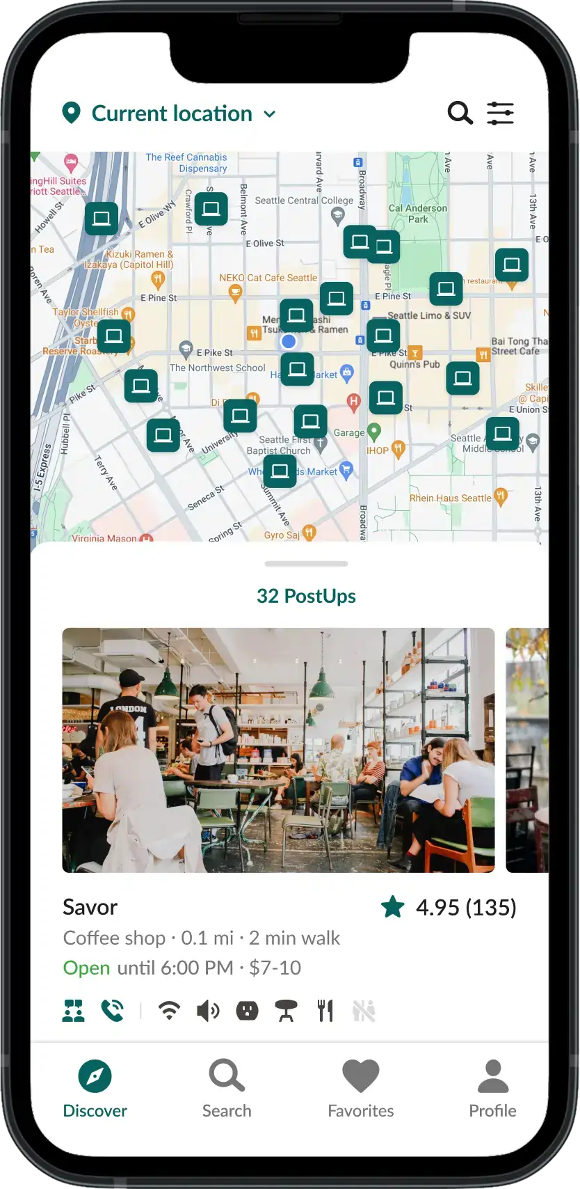 PostUp partners can offer exclusive in-app promotions, encouraging engagement and customer acquisition. Subscribers may filter for locations with ongoing promotions.