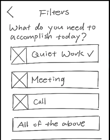 I mapped how the mobile solution could potentially be integrated into Nina's journey, where the solution would prioritize Nina’s specific work preferences and the tasks she’d perform. Based on my insights, I created a flow that allows her to filter workspaces by amenities like noise levels, distance, and seating availability.
