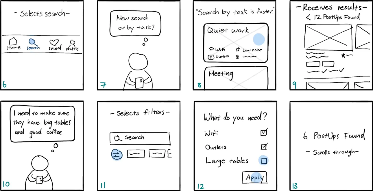 PostUp is a startup building an online community for remote workers and freelancers to share tips and advice. The team identified a growing need for reliable information about public places, such as libraries and coffee shops, where remote workers can be productive. However, essential details, such as stable Wi-Fi, outlets, and seating availability, are hard to find using tools like Google and Yelp.